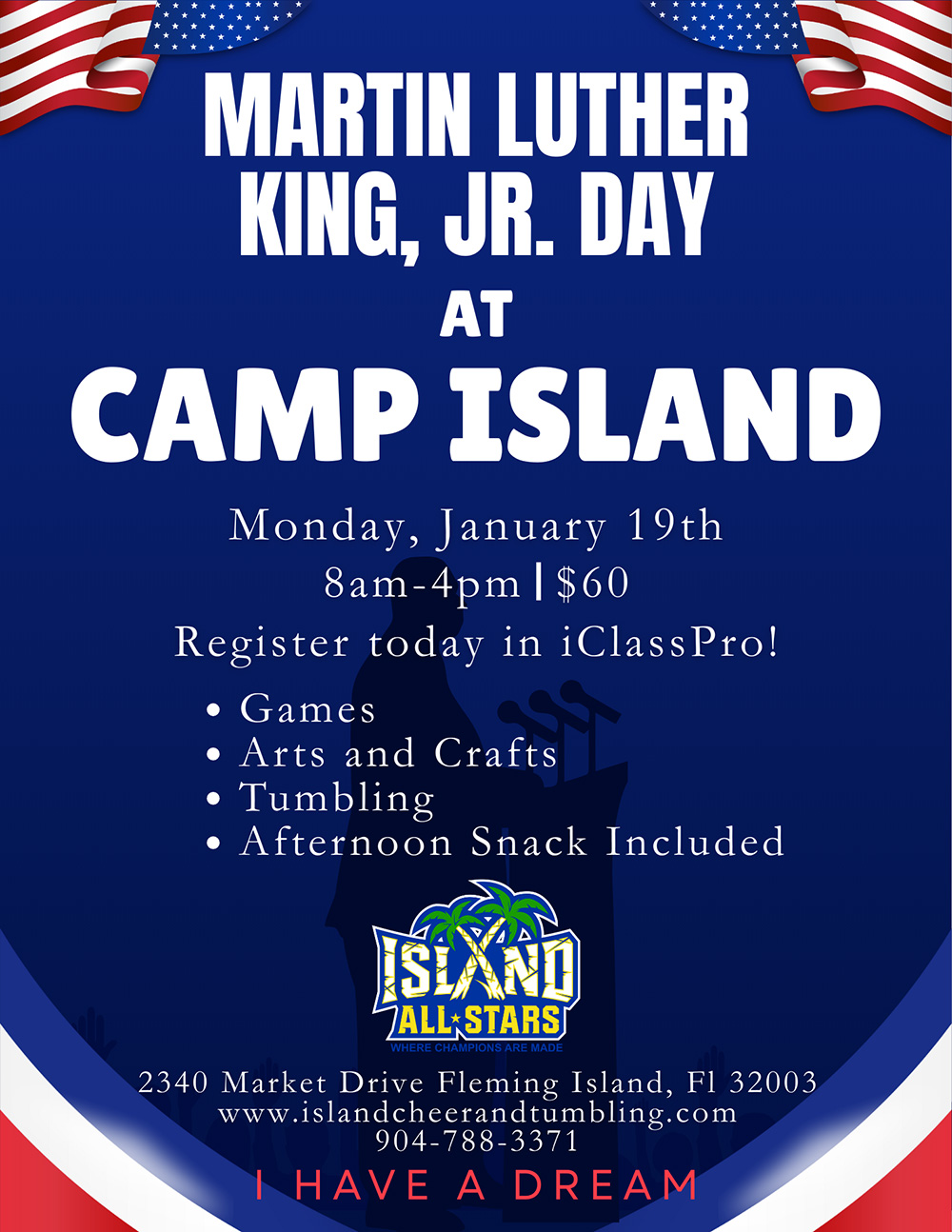 Looking for the perfect way to keep the kids busy, active, and having fun on their day off? We’ve got you covered! Join us Monday, January 19th from 8:00–4:00pm for a full day of fun at Island All-Stars! Your athlete will enjoy: Games Tumbling Arts & Crafts And SO much more! Register today in iClassPro!...